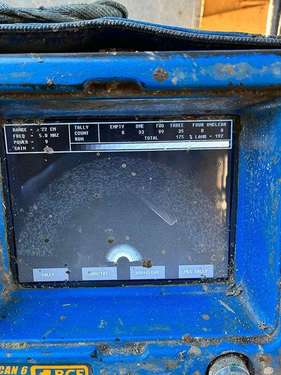 Lambing time is nearly upon on and this is made quite clear with the yearly job of scanning of pregnant ewes. Ewes are scanned to dertimine the number of offspring they are expecting which gives us an idea of the number of sheep to expect over the course of March.