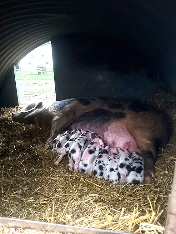 You may have seen on social media we had a very healthy litter of 11 piglets born in the middle of the snow blizzard. The mother sow which gave birth is a particular favourite as she regularly gives birth to health strong litters of piglets, which all grow up very quickly with belly's full of milk!