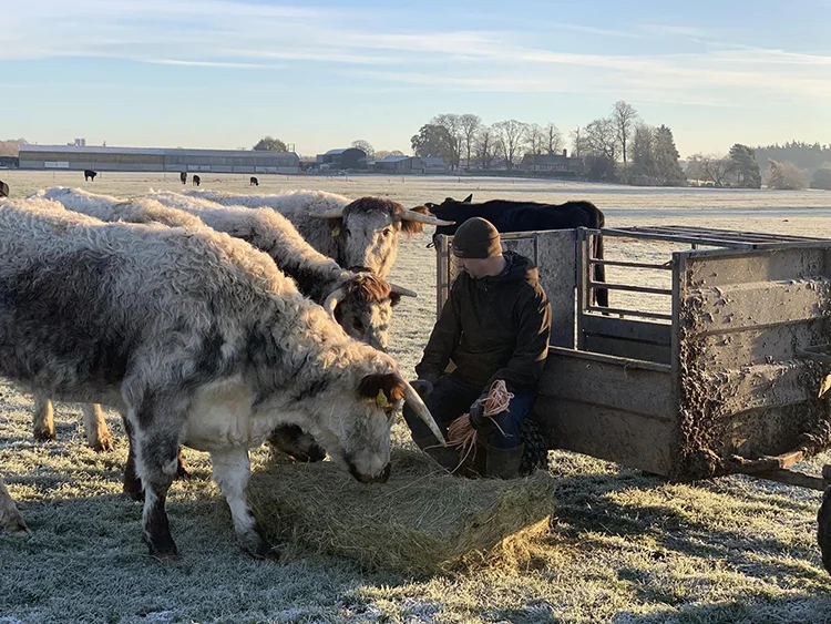 The weather in December was very mild, and although quite wet at times the ground isn’t too muddy. We’re expecting January to be a little colder and possibly to bring some snow. Our animals don’t mind that though. We’re well prepared for the winter months as we have new land where we’re growing a mix of grass and rape/kale for grazing the sheep over winter months, and we always store hay from the spring and summer for winter grazing. Our cattle love this!